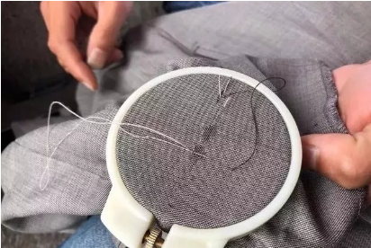 小董说,织补行业是一个很讲究传承的行业,他的技术是爸妈传给他的,诀窍就是仔细加认真。做织补之前要先研究衣服的纹路、布料经纬线、颜色等。织补利用的都是衣服本身的裁边修补。