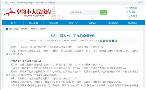 太和“撤县设市”工作进展如何?!相关部门已回应!